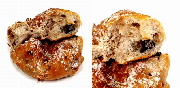 生地はやや硬めで、しっかりとした歯応えがあり、噛むと小麦とレーズン、クルミの香りが漂います。
