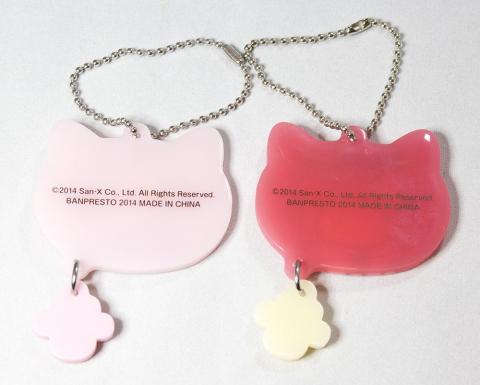 ネコの頭の形をしたプレートにボールチェーンが付いており、背面はテカテカして商標が書かれているだけです。