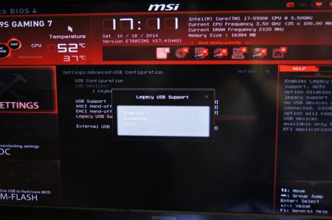 デフォルトではUSBのLegacy USB Supportが「Enabled」になっているので