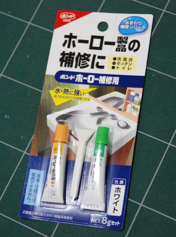 実家で洗面台に何かガラス瓶を落として洗面台を欠かしたので、直せと電話がかかってきました