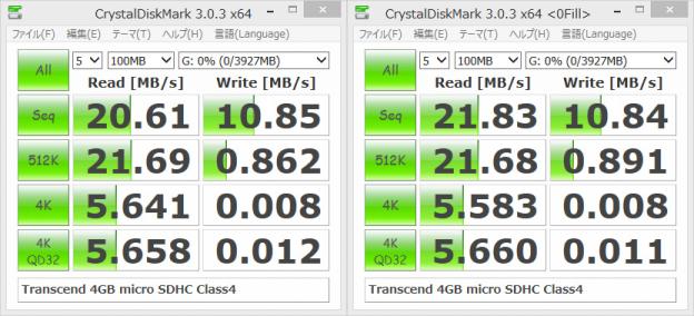 class4ですが、シーケンシャル リードで20MB/s出ているのでOKです。