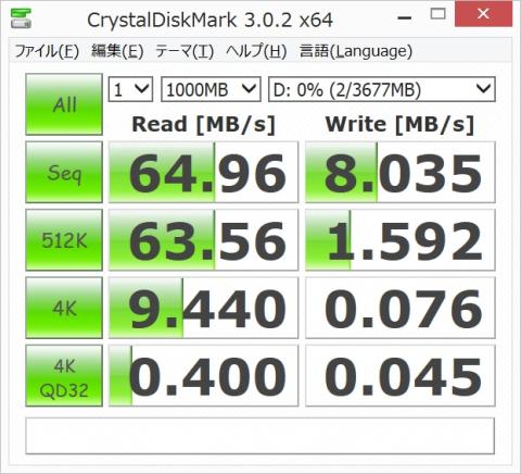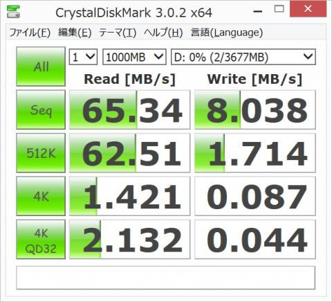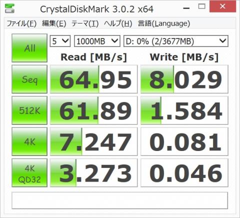 まずはUSB3.0のUSBメモリを直接本体に挿して計測しました。