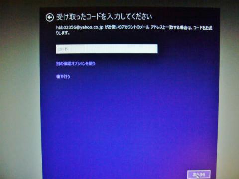直ちにメールを確認し、「コード」の入力です。