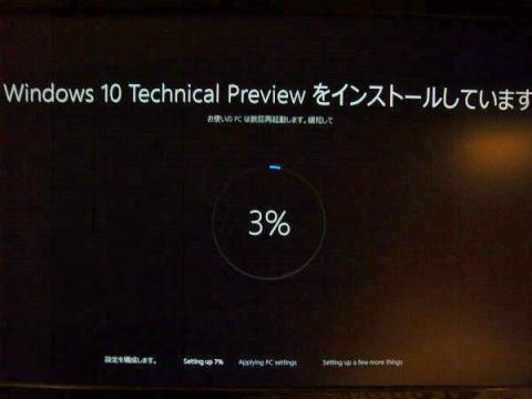 Windows Updateの写真を撮り忘れたのですが、Build10041へのWindwos Update中です。