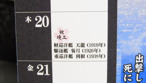 日付には実艦の竣工日が表記され(写真は11月20日)、大抵そこに縁のある艦のイラストが入る。更に4人詰め込まれたせいで秋雲なんかは日付のスペースにイラストの一部が乗っかる事もあり予定はもう書き込めない。