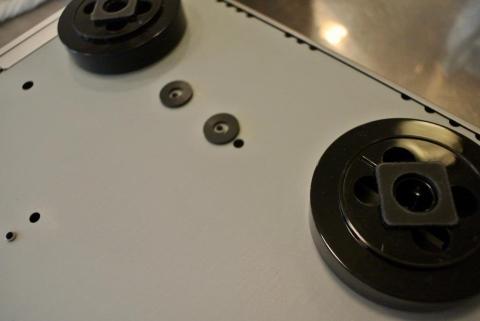 オーディオ用半球型ゴム足に鉛製キャップを組み合わせた自家製インシュレーターを追加使用