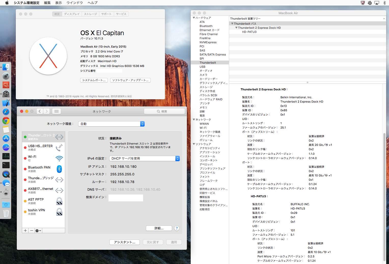 MacOS X El Capitan(10.11.3)とBoot Campに入れたWindows 10 PROで使っています。