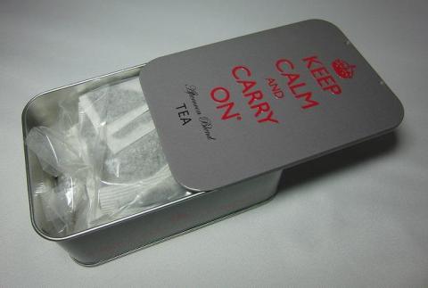 Keep Calm And Carry On Sliding Lid - Grey Tea Tin (JFSIL)