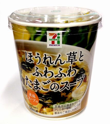 セブンプレミアム「ほうれん草とふわふわたまごのスープ カップ」は以前から同じ様な物はありましたが、今回は、「液体スープ付」になりました。「具」と「スープ」が別になっています。前の物も美味しかったので、今回も、ますます期待してしまいます。