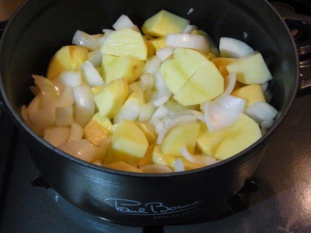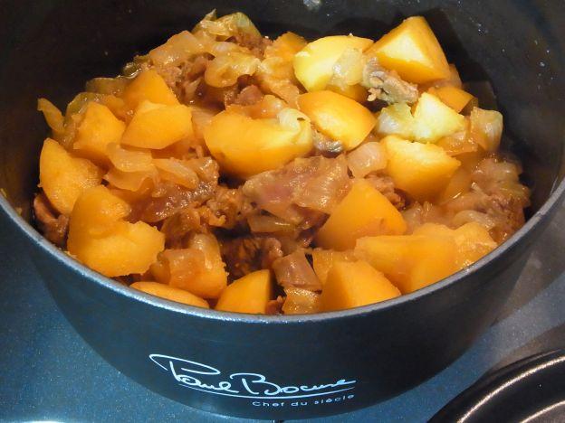 8)玉ねぎが程度透き通ったら、次にジャガイモ投入。