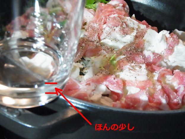 3)その上に豚肉を重ならないように広げて敷き詰め、また塩胡椒。