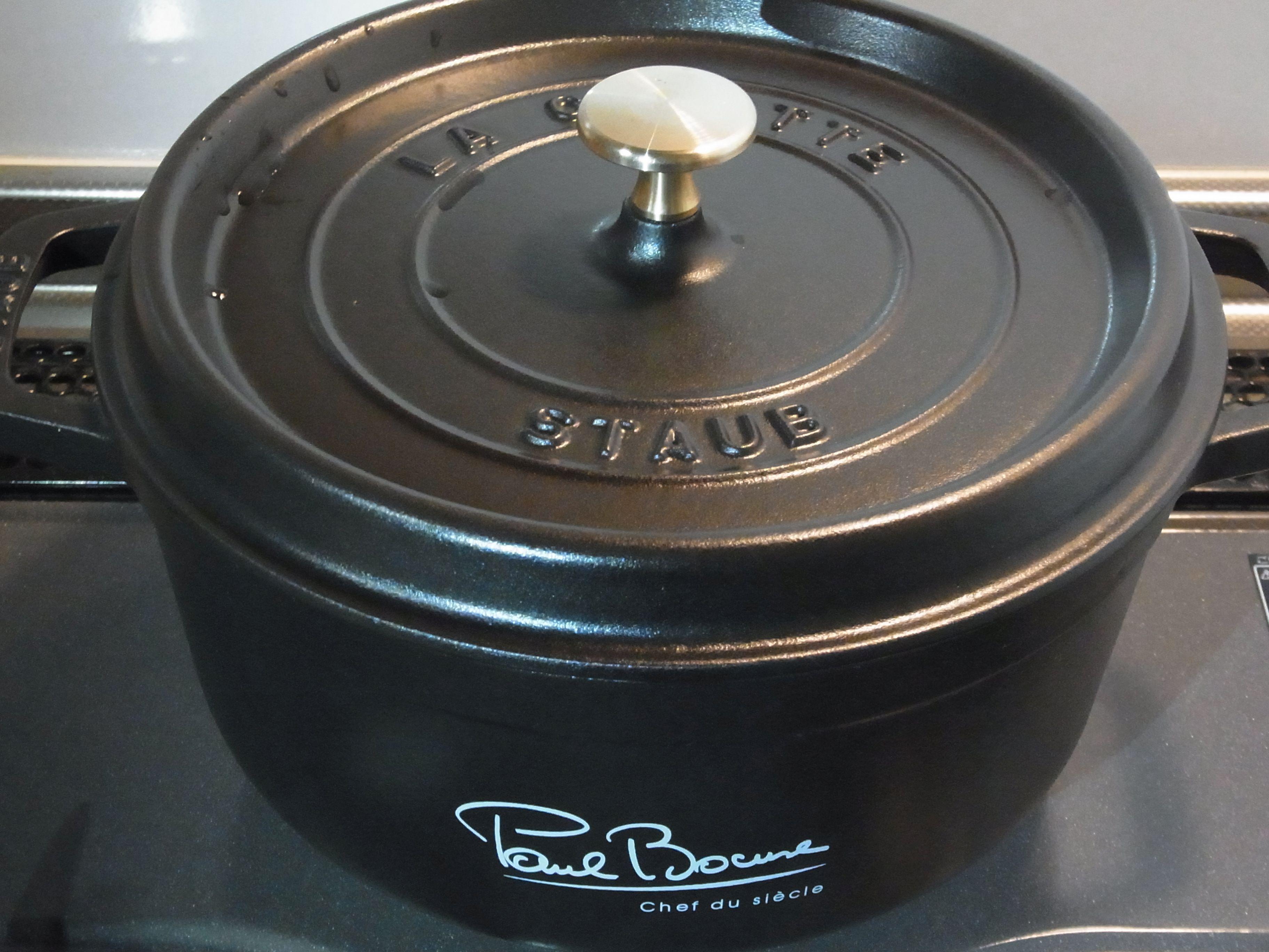 ただ、蓋の裏に蒸気の対流に効果を与える「ピコ」と呼ばれる突起をもつなど、一般的なLE CREUSETのココットと比べるとちょっとこだわったつくりでもある。モノはSTAUB誕生40周年を記念した限定ココット。現在STAUBの共同開発者でもある、フランス料理界の巨匠Paul Bocuseのサインが刻まれたリミテッドエディション。限定数としては全世界で4000個、国内70個。