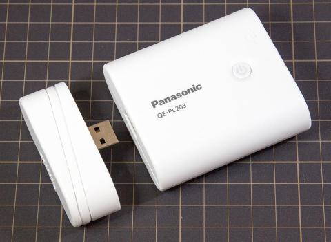 本品は容量が 5800mAhの 2ポート出力(合計 1.5A)ありますが、面白いのが本体と一体化できる USBコードアタッチメントが付属しています。