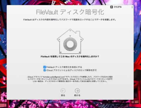 問題1:パッチコ環境ではバッテリー異常消費の問題が発生していますが、どうやらFileVaultの機能を有効にすると、動作にもたつきが発生するようです。現在は無効にして幾分安定しています。