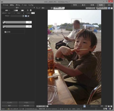 編集モードで特に使いそうな機能として、モザイク、トリミング、リサイズでしょう。