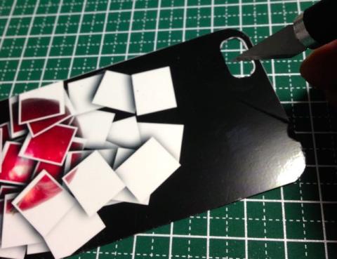 テスト印刷を行って配置を確認。筆者の場合は「カッティングが下手くそ」というのがあり、せっかく細かくカメラ周りのカットラインを書き込みましたが、カットしやすいように簡単な図形に変更してます。