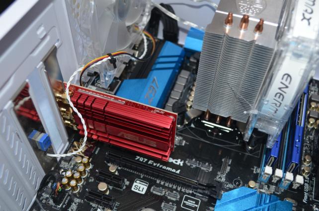 小さいのであまり邪魔になりません。赤いヒートシンクは下向きでみえない・・