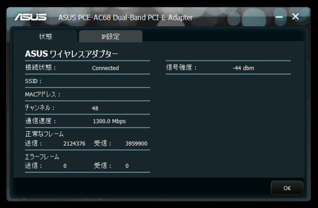 取り付けてから一度も切れず、最大1,300Mbpsで一度も途切れず接続しています。