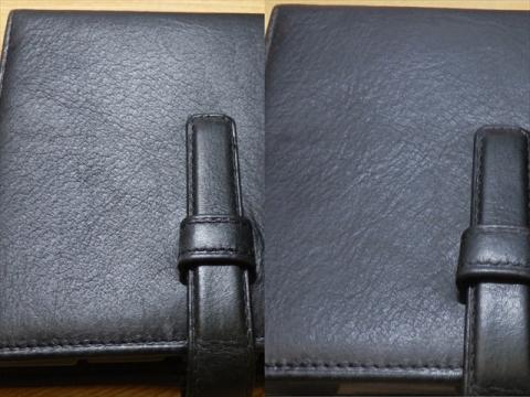 見事に復活したお肌は、鈍い光沢で、結構渋くて好きです。中のリングも、内貼りの合成皮革部分も、材質特有の光沢を除けば、CARVENのものより、しっかりとした造りですし、上記の比較画像で見えるように、ベルト、ベルトホルダーはもちろん、ペンホルダーも本革で、「Ω」型で両端を止めているタイプではなく、リング状に縫製してあるような感じで頑丈そうです。