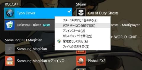 最後にFinishをクリックしたら完了なのですが、Windows8.1だとデスクトップやタスクバーにショートカットが作成されないため、スタートメニューの一覧側に格納されています。
