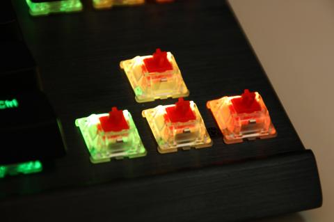 赤軸なので、スイッチ感は無く、黒軸より軽めに反応します。