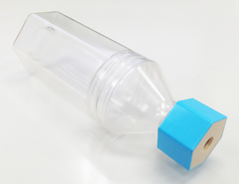 ペットボトルに取り付けられる鉛筆削り「ケズリキャップ」のボトル付きセットです。