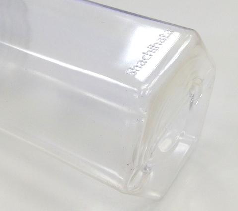 また、ペットボトル(PET樹脂製)より硬質でしっかりとした印象ですが、ねじ込み部などエンピツの芯の粉で擦れて汚れると汚れが落ちにくいという欠点があります。また、硬さ故ペットボトルより衝撃などに弱いかも知れません。。。