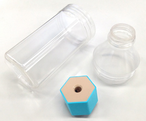 本製品はケズリキャップ本体と専用の透明ボトルがセットになっており、買ってすぐに使える仕様となっています。とはいうもののペットボトルはどこでもすぐに手に入るので、ボトルが付いているという部分のお得感はほとんどありません^_^;
