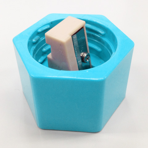 ケズリキャップ本体については、極太のエンピツを切ったような六角形のデザインと色合いが玩具的でもあり親しみやすく子供に受けるカタチとなっています。