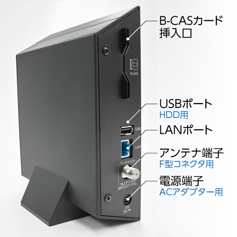 USBポート(Aタイプ):対応HDD容量は最大2TB。