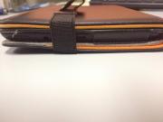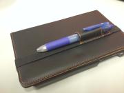 ゴムにはペンを指すことも可能です。一応2+1ボールペンがちょうどいい太さかなと。しかし、明らかにこの太さはいらない。タブレットカバーの縁が丸く凹んでいるかと思いますが、これあは普段カバーを後ろ側に折りたたんで使用しているため、背面のボタンに押し付けられて生じます。
