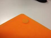買った当初は蛍光色のオレンジで若干すごくダサい、というか中2ちっくだなぁなんて思っていました。スリープ機能も付いていて、マグネットは左上部にあります。このマグネット部分も開閉を何回も行うとう色が剥げてきます。