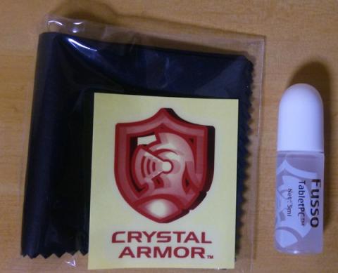 中身はフッ素コーティング剤とクロスとクリスタルアーマーのシール。