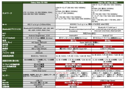 この表に記載はしていませんが、S6Edgeは充電池が電池パックを自分でとりかえることができません。