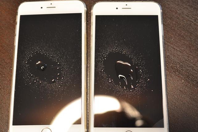 iPhone6 Plusは、ガラスフィルムに交換したばかりでオイルコーティング効果もあったのか、劇的な変化はなかったのですが。