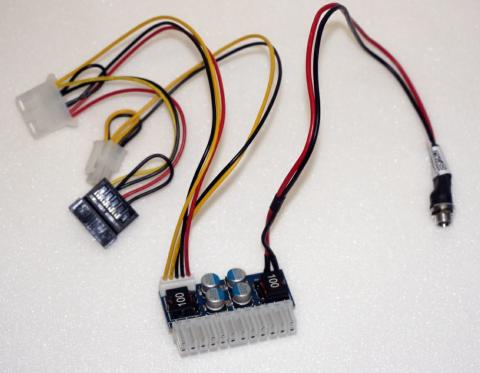 マザーボードの24ピンコネクタに直接取付けるDCコンバーター。出力は160Wですが、超小型でThin mini-ITXケースにも余裕で収まりそうです。ACアダプターを使用するので省電力、静音が期待できます。