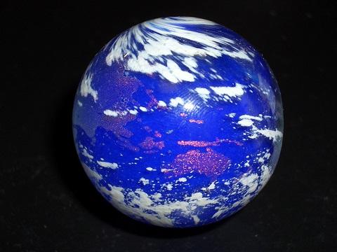 地球型ペーパーウエイトです。たぶん、ガラス球だとは思うのですが、