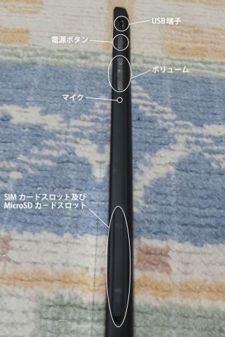 端子、ボタンはほぼ右側面に集中しています(上面にはWindowsボタンとヘッドフォン端子が有ります)。充電にも使えるUSB端子は出先などでは便利ですが充電中にUSBが塞がれてしまうので、別に充電端子が欲しかった気がします。両方充電に使えるとベスト。Buffaloら本体に充電しながら使えるUSBハブも出るそうなので予約しました。届いたら使用感を書いてみたいと思います。