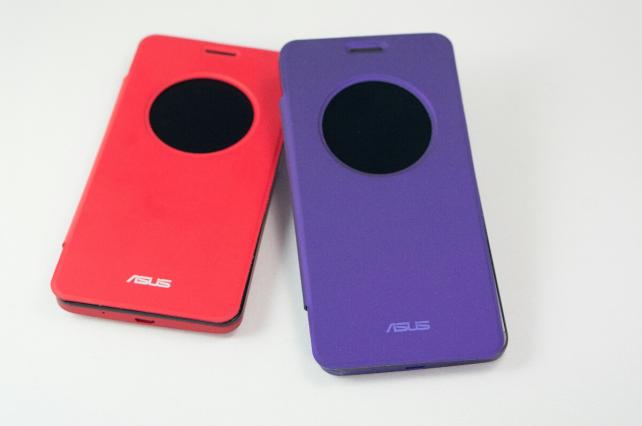 左は旦那のZenfone 5(View Flip Cover レッド装着)・右が私のパープル