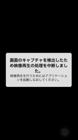 ちなみに視聴時に画面のキャプチャを撮ろうとしても下記画面が表示され、アプリの再起動を促されます。