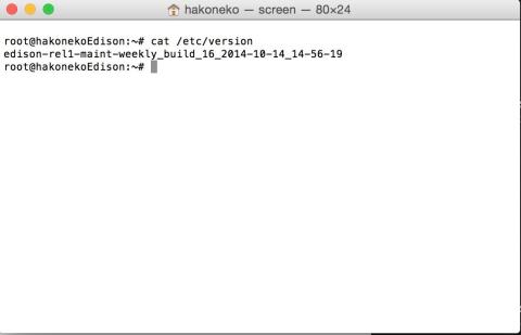 とりあえずちゃんと動いているかをみるために、ターミナルからscreenコマンドを使ってEdisonに対してUSBシリアル接続をしてみましょう。