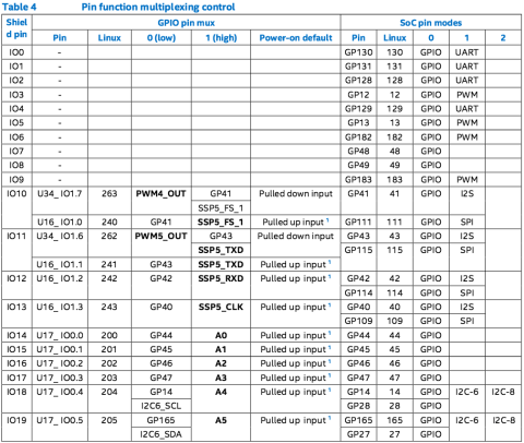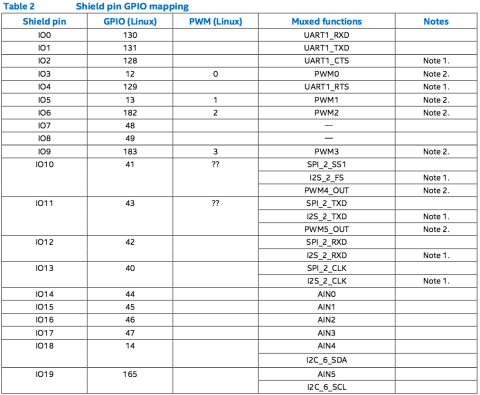 ※シールドピン番号とEdison(Linux)内部のGPIO番号の対応とマルチプレックス機能の割り当て