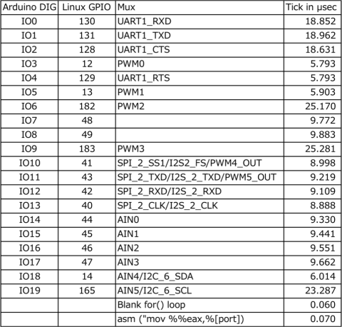 (追記9/18)MCU SDKを使ってQuarkのGPIO速度を計測したところ、8.8μ秒、約113 MHzという結果になった(セクション3.6)。すべてのピンについて調査した結果も追記。