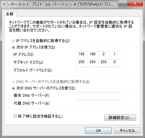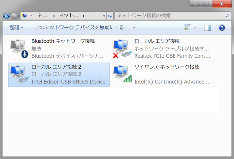 Edisonのusb0が自動設定で192.168.2.15になってるから、PCの方も同じイントラネットに設定する。
