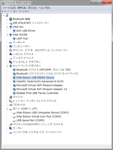 Windows 7 Home 64 bit。ネットワークアダプタでUSB RNDIS Deviceにビックリマークが付いてて動いてない。他のシリアルポートは問題なく認識されてる。