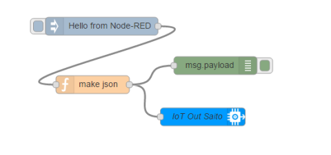 functionノードでjson がちゃんと編集できていないと、iot out ノードでエラーになります。
