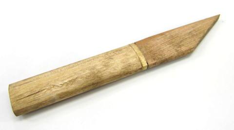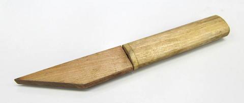 この手の小刀は大きめのカッターナイフがあれば大抵は代用できるのですが、切ったり削ったりする対象物によってはカッターナイフだと刃が薄っぺらくて少し頼りなく感じることがあります。