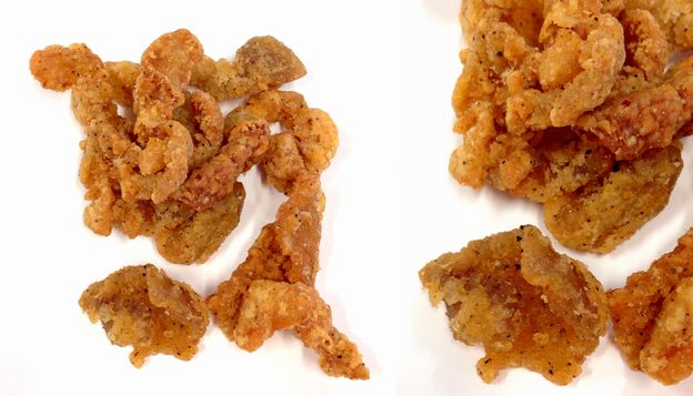 「パッケージ」には、「温めずにそのままお召し上がりください」と表示されています。経験上、これは「温めてはいけません」と解釈すべきです。温めると、「油が出て来て、どうにもならない」からです。これは「鶏皮」の性質です。