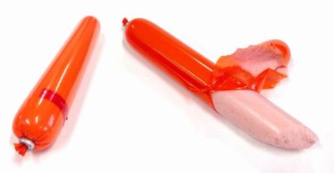 お馴染み、マルちゃんの「魚肉ソーセージ」です。多少、LとかMとかサイズは色々とある様ですが、75gは大きい方だと思いますが、魚肉ソーセージの定番と言えます。