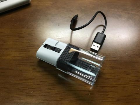 透明なキャップの中にマウス本体を収納することでとってもコンパクトになりますね。